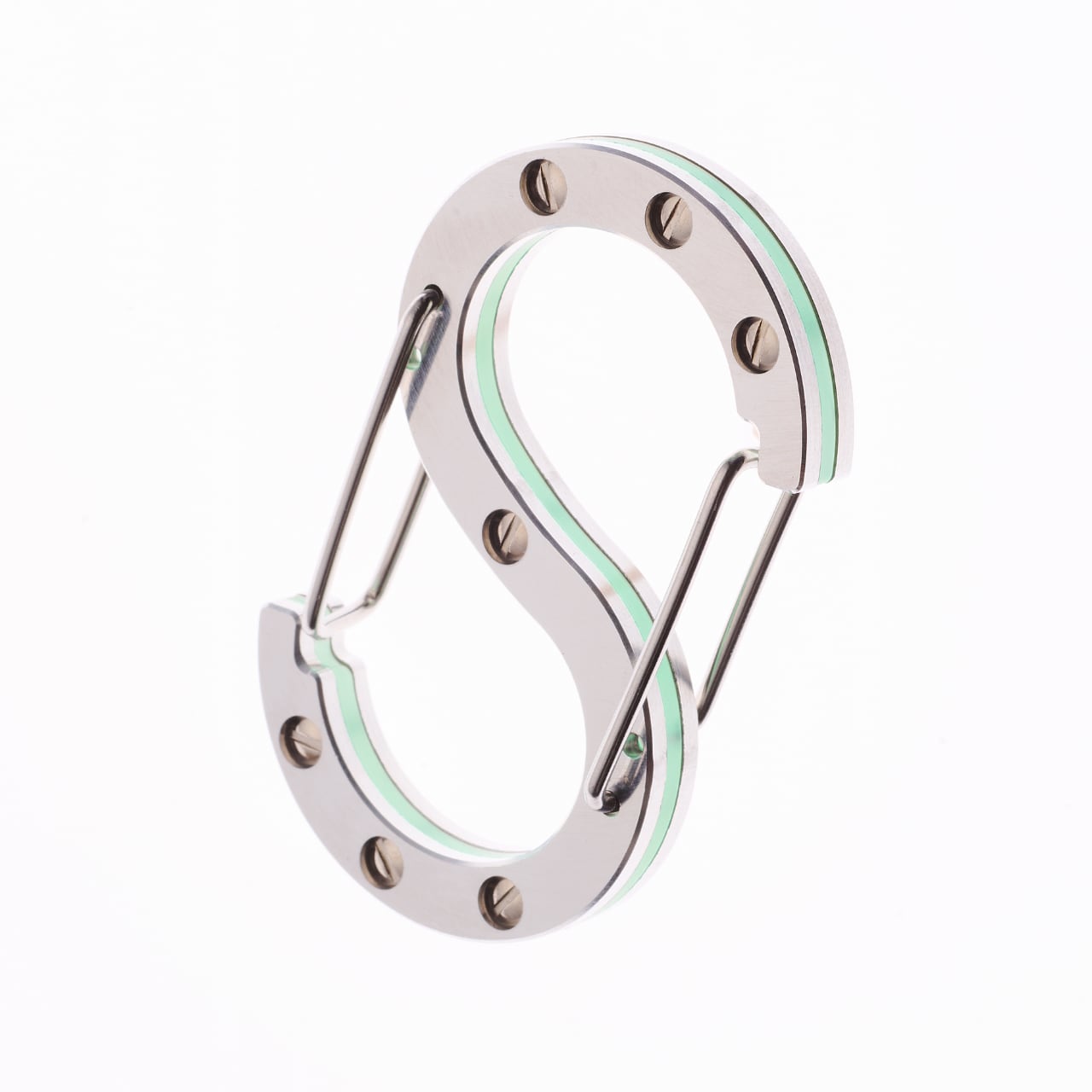 ジュラルミン製カラビナに蓄光樹脂を組み合わせた、新発想のカラビナ「Dura glow」。